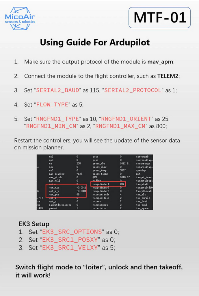 MTF-01 Optical FLOW and LIDAR